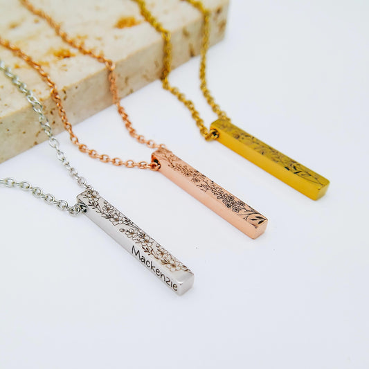 BIRTH FLOWER 3D BAR NECKLACE