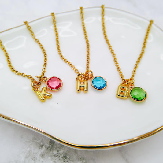 BUBBLE LETTER + BIRTHSTONE NECKLACE