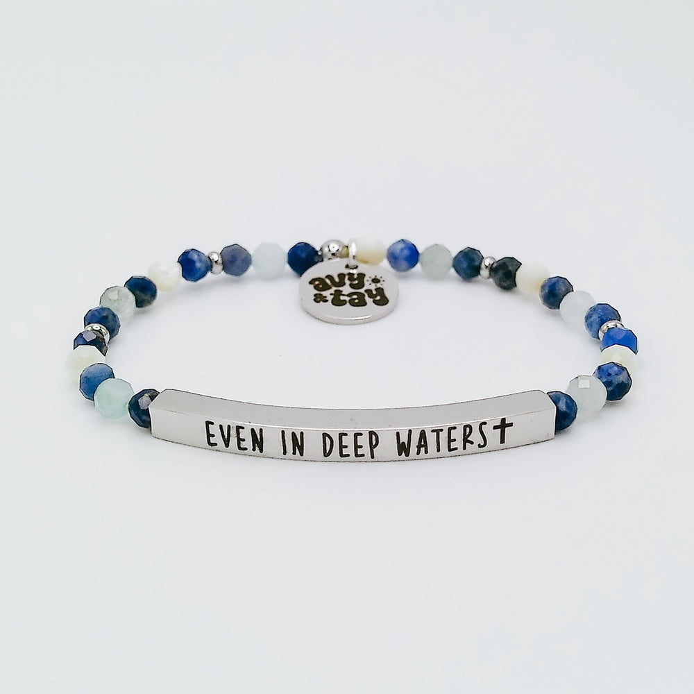 Engraved with “Even In Deep Waters,” inspired by the promise of “When you pass through the waters, I will be with you” (Isaiah 43:2). It’s a reminder of God’s presence, strength, and peace through every season.